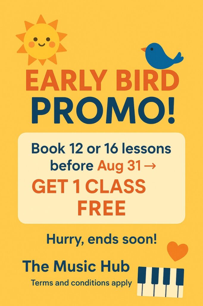 🌞🎶 EARLY BIRD PROMO* at The Music Hub! 🎶🐦