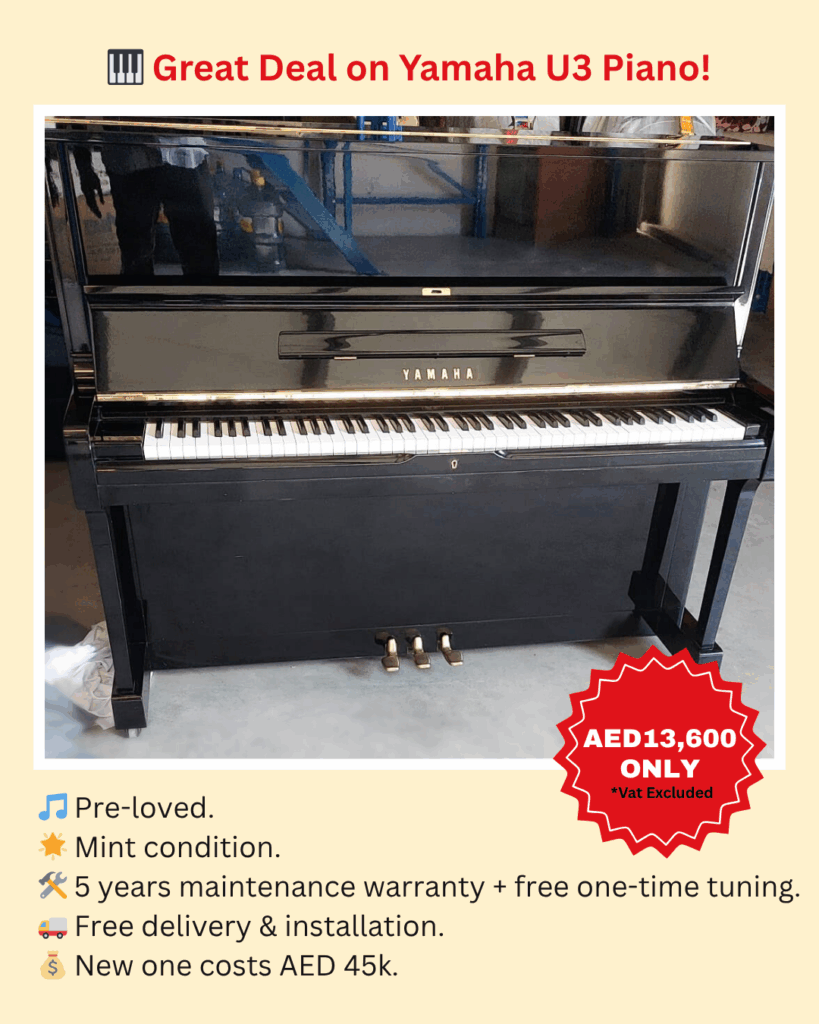 🎵 Pre-loved. 🌟 Mint condition. 🛠️ 5 years maintenance warranty + free one-time tuning. 🚚 Free delivery & installation. 💰 New one costs AED 45k. Message us for more details.