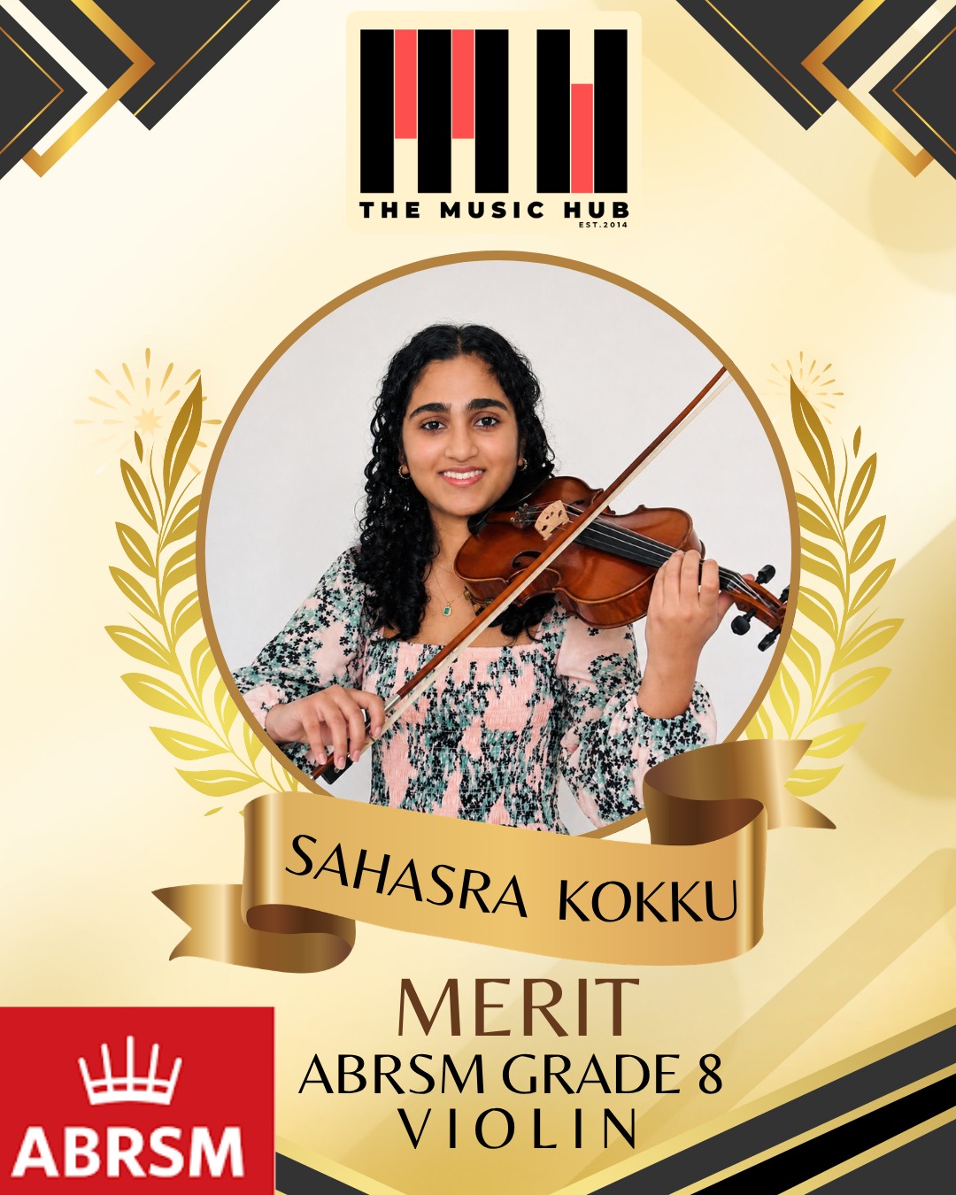 Congratulations, Sahasra, on passing your Grade 8 Violin exam! 🎻✨